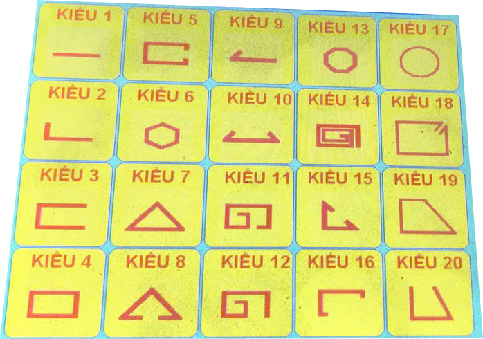 Kiểu dáng: Vuông, chữ nhật, tam giác, vòng tròn...